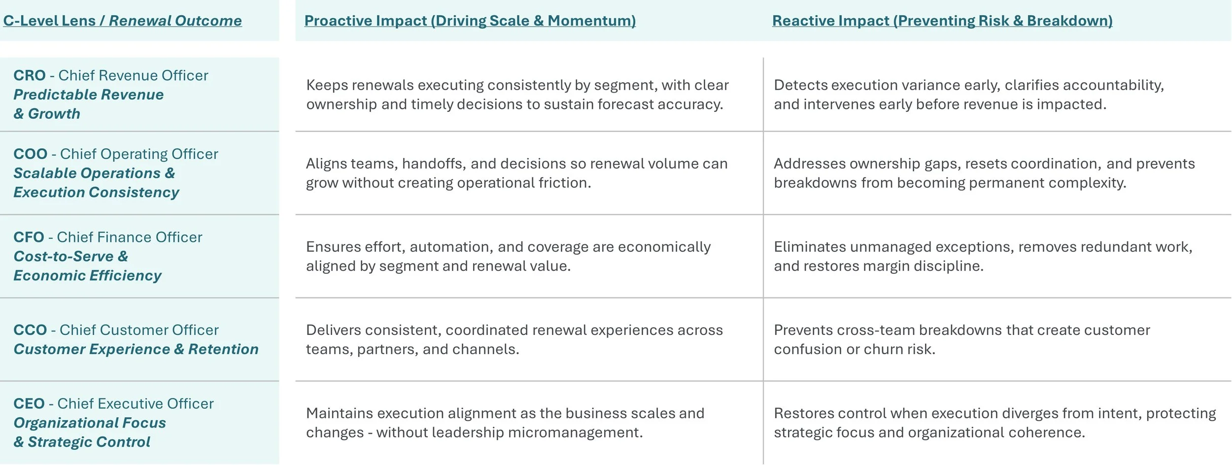 Sustaining alignment as renewal execution scales and evolves.